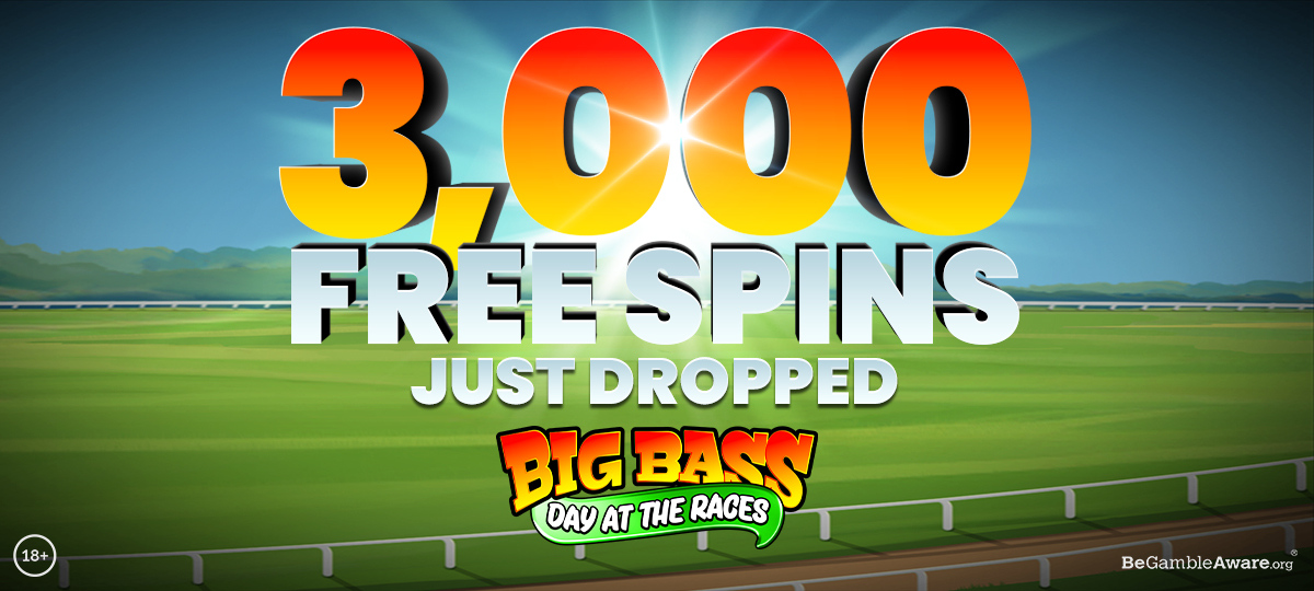 13th March - 20th March 2026 only. Winners randomly selected. 360 prizes of 5 Free Spins or 25 Free Spins. 3,000 Free Spins in total. Spins valid on Big Bass Day at the Races only. Spin value is 10p. Full T&Cs Apply. 18+ Full T&C’s apply.