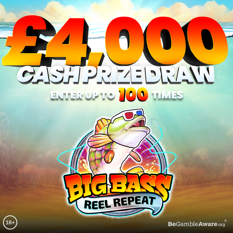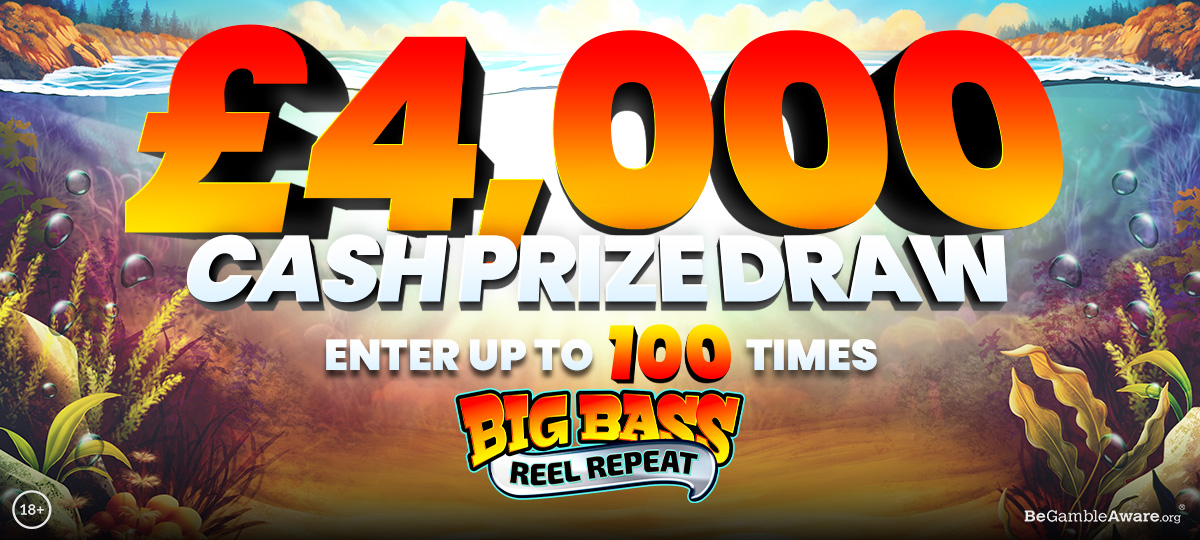 From 9th September to 7th October, you could reel in a share of our £4,000 Cash Prize Draw! One lucky player will scoop the grand prize of £1,800 – will it be you?