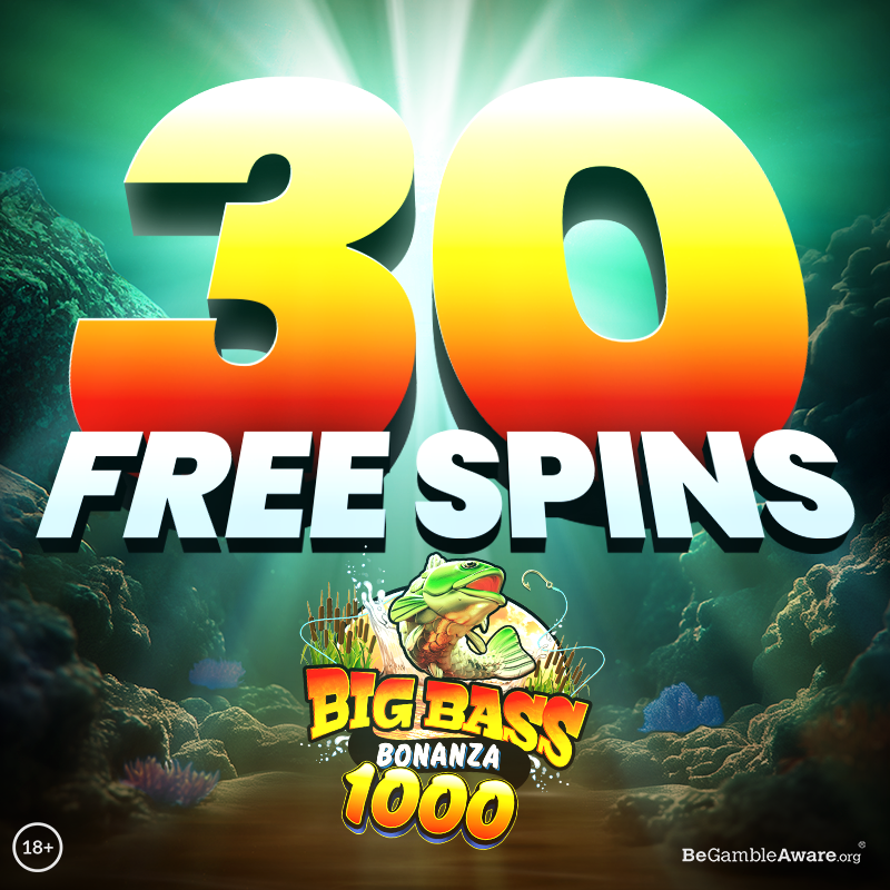 Simply opt in and wager £30 on any slot game, and you’ll unlock 30 FREE SPINS on Big Bass Bonanza 1000.