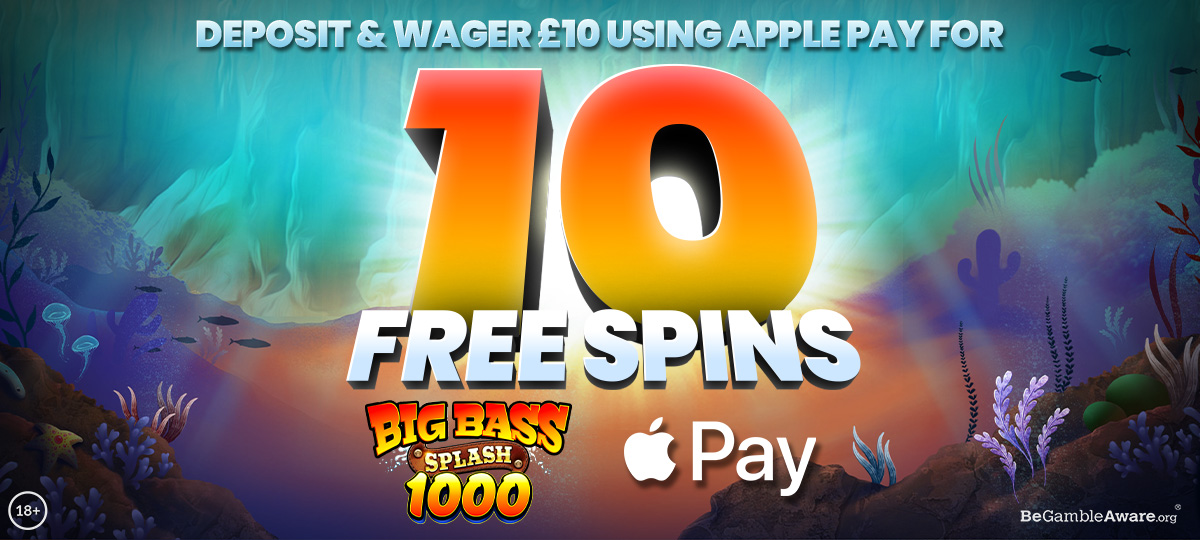 Apple Pay has arrived! Use it to unlock 10 FREE SPINS on Big Bass Splash 1000!