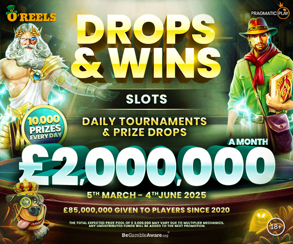 The latest season of Drops & Wins runs from 5th March to 4th June 2025 and will continue to offer the largest monthly prize pool available online, totalling £2,000,000 in cash!
