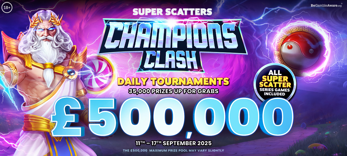 From 11th to 17th September, upgraded Super Scatter titles take the spotlight, giving you the chance to climb the leaderboard and compete for your share of the £500,000 prize pool. Rewards include free spins and cash prizes up to £10,000!