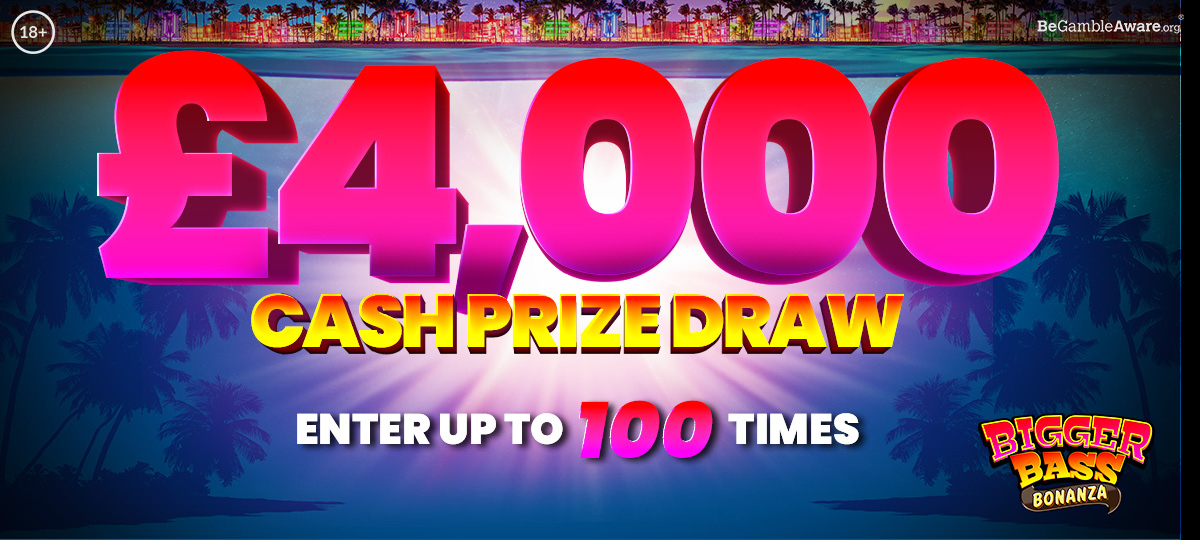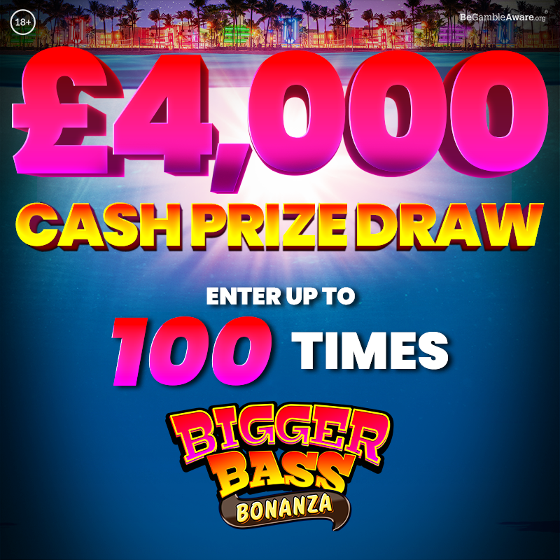 To qualify for one entry, simply opt in, deposit £10 and wager it on any online slots. Enhance your chances of winning by entering the prize draw up to 100 times throughout the promotion. Plus, players who earn one entry or more will receive 10 FREE SPINS on Bigger Bass Bonanza.
