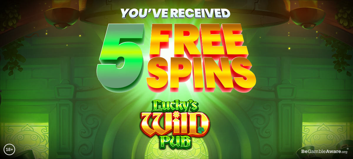 Players will each receive a maximum of 5 Free Spins valid on Lucky’s Wild Pub.